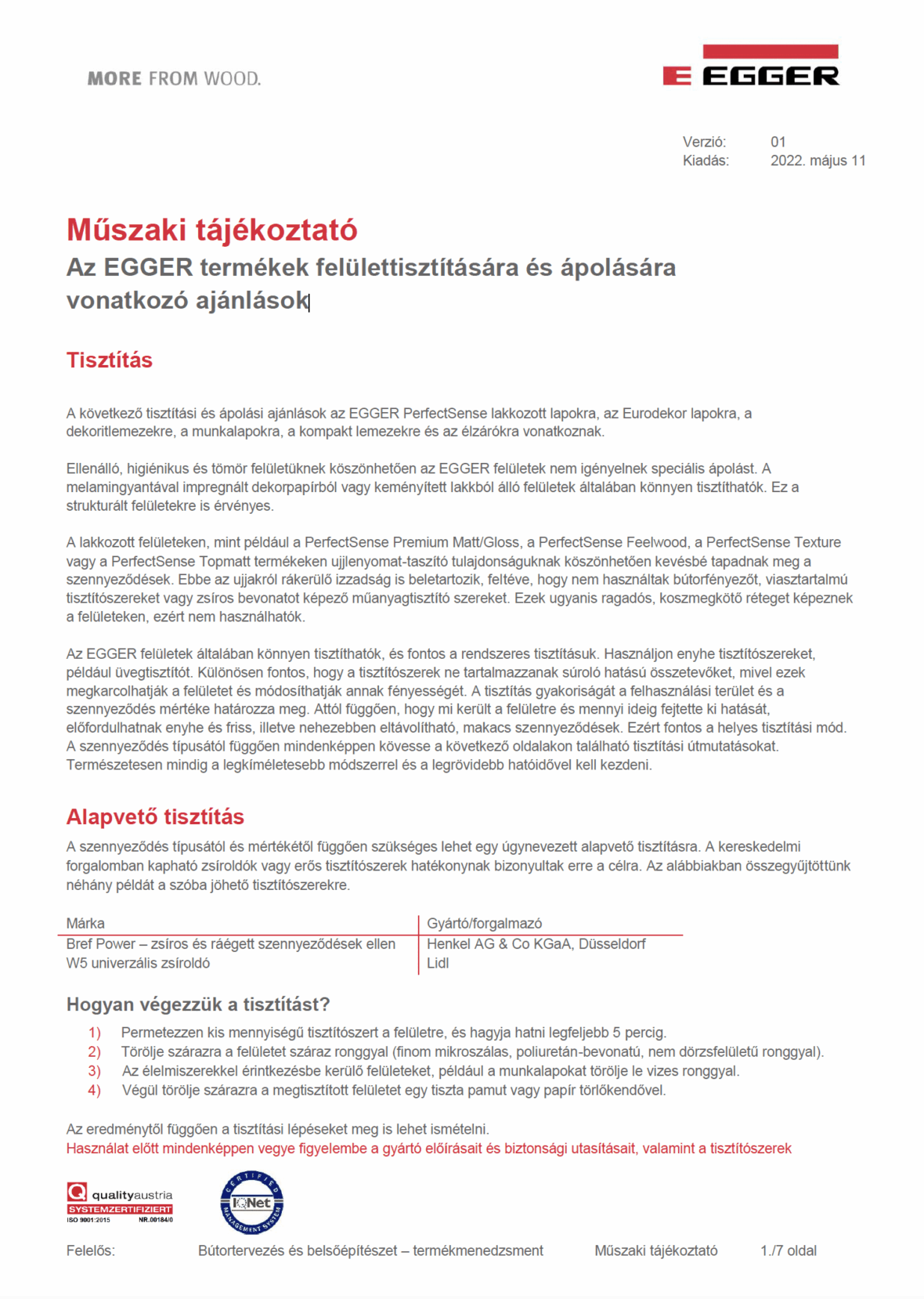 EGGER termékek felülettisztítására és ápolására vonatkozó ajánlások 2026.02.17. EGGER termékek felülettisztítására és ápolására vonatkozó ajánlások EGGER termékek felülettisztítására és ápolására vonatkozó ajánlások Letöltés EGGER, GARANCIA